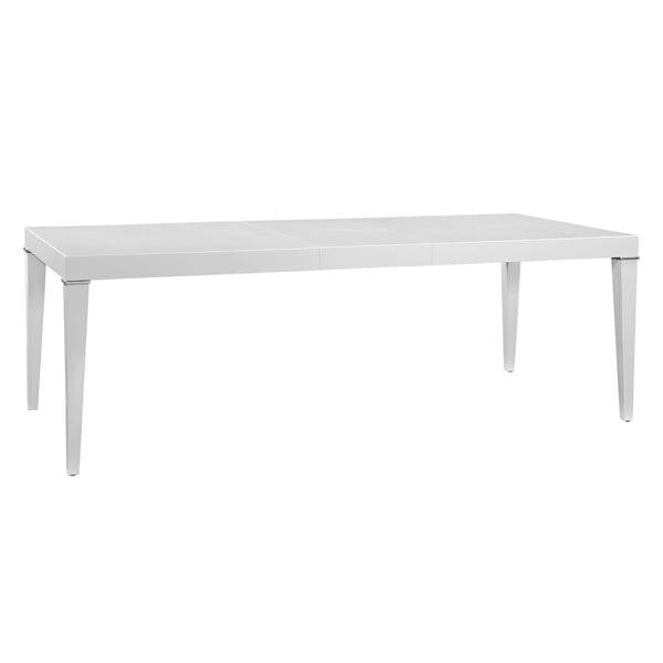 The Jordan Dining Collection embodies the essence of contemporary design with its clean lines and flawless Modern White finish. Crafted from beautiful birch veneer, this collection offers a light and airy feel, perfect for creating a bright and inviting dining space. Silver finish accents add a touch of sophisticated glamour throughout the collection. The Jordan dining collection is perfect for those who appreciate the simplicity and enduring appeal of modern design. Jordan provides the perfect setting for family gatherings and dinner parties, where conversation flows effortlessly amidst the collection's clean lines and subtle elegance.